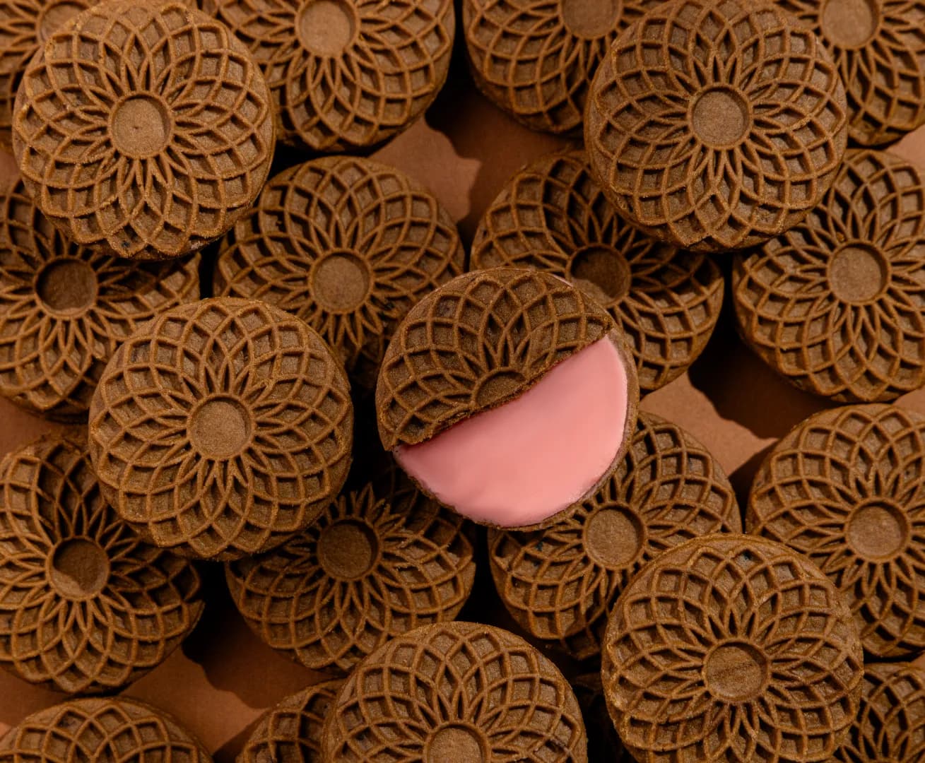 Biscuits fourrés à la crème, ornés d'une mandala finement gravée
