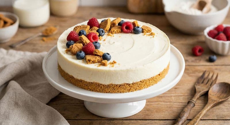 Une base croustillante de biscuits Mandala émiettés, surmontée d'une crème onctueuse au fromage.